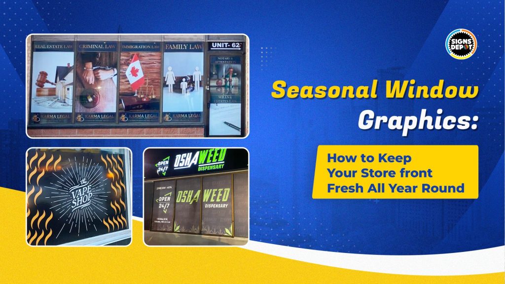 Your storefront signs in Toronto are the diva of Main Street. It wakes up every morning, sips its metaphorical latte, and demands, “What’s my vibe today? Am I a pumpkin-spiced autumn queen? A sunburnt summer beach bum? Or maybe… a glitter-covered New Year’s disco ball?” If your windows could talk, they’d probably ask for a […]