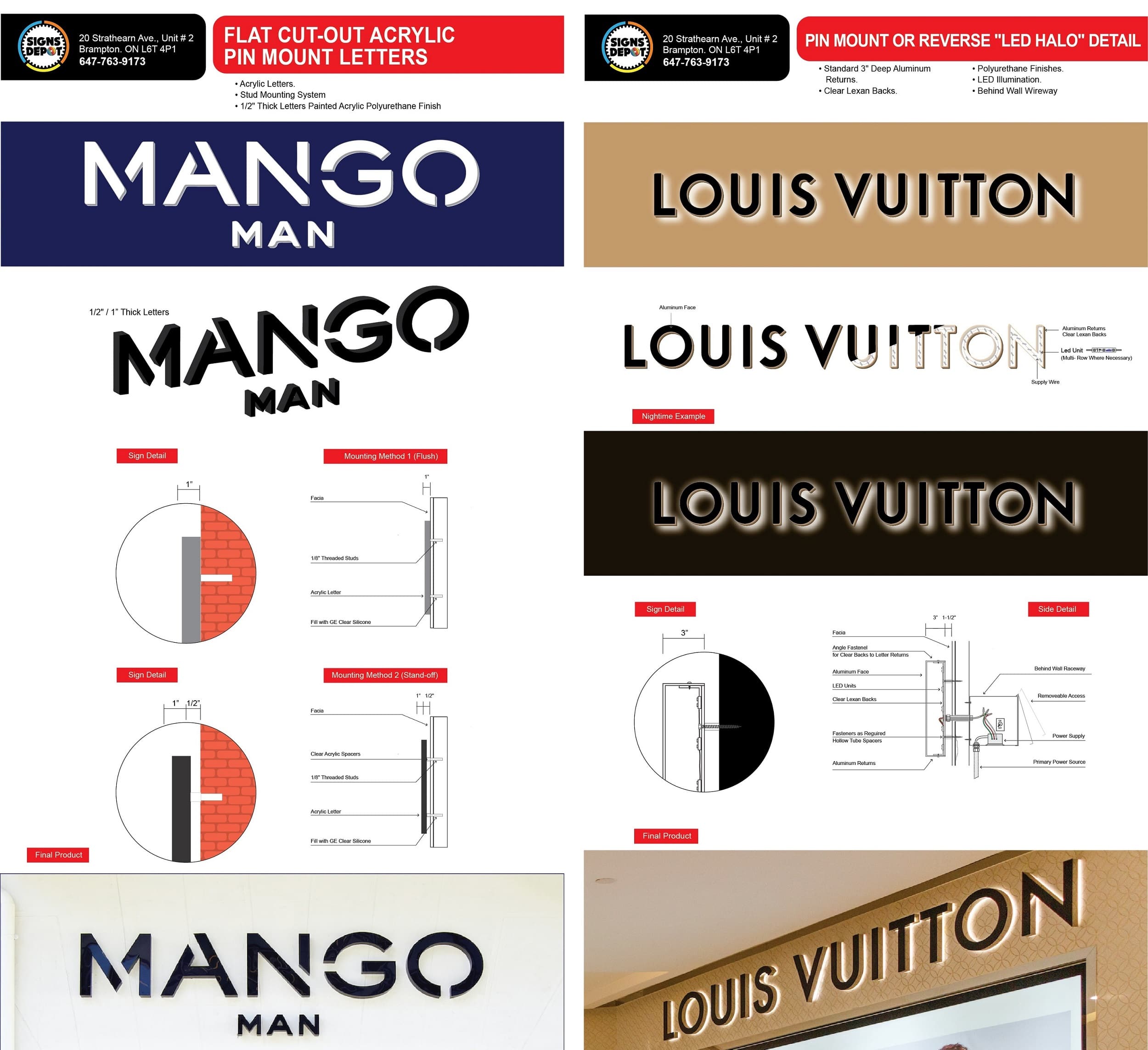 Pin-mounted letters can be customized to suit your vision, including sleek and modern or rustic and natural looks, to create signage that perfectly represents your brand or message. Signs Depot creates pin-mounted letters in Brampton, Ontario to help your business to stand out from the competition.